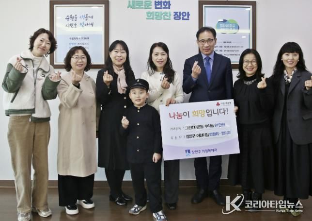 코리아타임뉴스 사회팀 | 수원시 장안구는 지난 28일 어린이집 연합회·협의회가 주최한 그린리더운동 수익금 전달식을 가졌다.