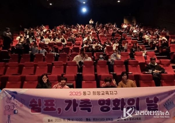 코리아타임뉴스 부산취재본부 | 부산 동구는 지난 11월 29일 롯데시네마 광복점에서 2025년 동구 희망교육지구 ‘쉼표, 가족 영화의 날’ 프로그램을 개최했다. 이번 행사에는 관내 초·중학생 및 학부모 등 200여 명이 참여했다.