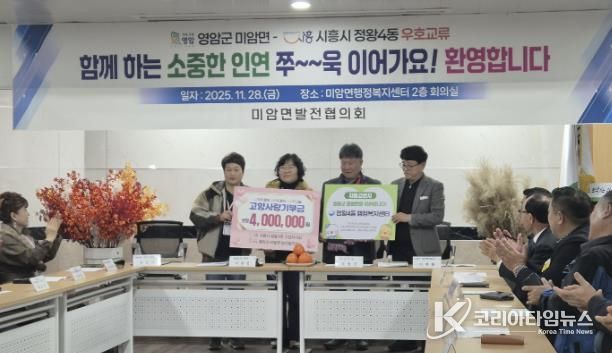 코리아타임뉴스 경기취재본부 | 시흥시 정왕4동 행정복지센터는 지난 11월 28일부터 29일까지, 자매결연지인 전남 영암군 미암면과 함께 1박 2일 교류 활동을 진행했다. 이번 방문은 주민자치회를 중심으로 지역 간 이해를 넓히고 상호 협력을 강화하기 위한 취지로 추진됐다.