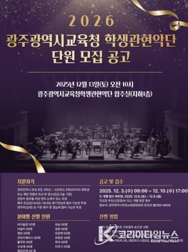 코리아타임뉴스 사회팀 | 광주시교육청학생교육문화회관은 ‘2026 광주광역시교육청 학생관현악단’ 신규 단원을 모집한다.