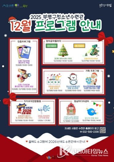 코리아타임뉴스 사회팀 | 부평구 청소년수련관은 12월에도 다채로운 분야의 체험형·진로탐색형 프로그램을 운영한다.