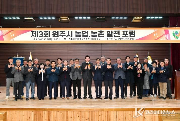 코리아타임뉴스 노승선 기자 | 원주시농업인단체연합회는 지난 2일 열린 제3회 원주 농업·농촌 발전 포럼을 열띤 분위기 속에서 마쳤다.