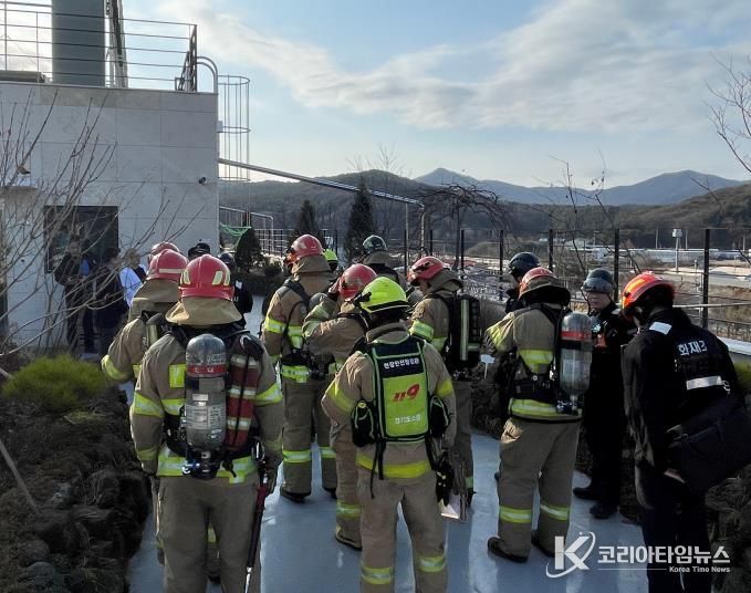 이번 훈련은 ‘요양병원 5층에서 원인 미상의 화염과 다량의 농연이 발생한 상황’을 가정해 진행됐으며, 현장지휘단을 비롯한 펌프차·굴절차·구급차 등 소방차량과 대원들이 동원됐다. 대원들은 출동로 및 진입로 확보, 차량 배치, 무전망 분리 운영(지휘망·작전망) 등 초기 대응 절차를 숙달하며 실전과 동일한 수준으로 훈련을 수행했다.