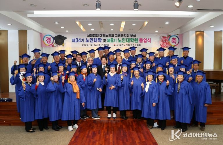 코리아타임뉴스 전남취재본부 | 고흥군은 4일 고흥 하나웨딩홀에서 대한노인회 고흥군지회 부설 제34기 노인대학 및 제6기 노인대학원 졸업식을 개최하고, 평생 배움을 실천해 온 어르신들의 한 해 동안의 노력과 열정을 축하하는 자리를 가졌다.