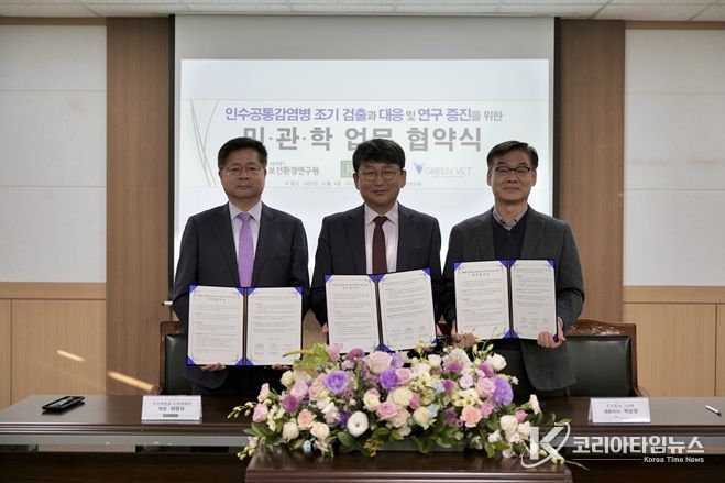 코리아타임뉴스 의료보건팀 | 서울시보건환경연구원은 건국대학교 수의과대학, ㈜그린벳과 인수공통감염병 및 반려동물 항생제내성 조사·연구를 위한 민·관·학 상호 업무협약을 체결했다.