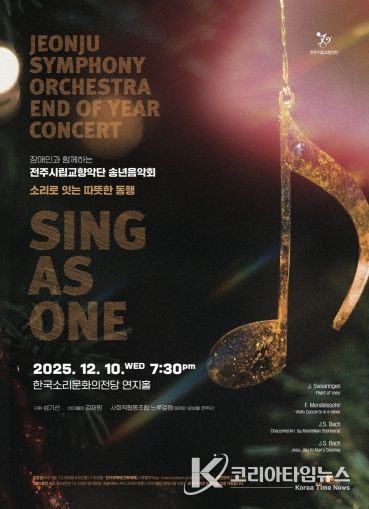 코리아타임뉴스 전북취재본부 | 전주시립교향악단이 연말을 맞아 음악으로 사회적 가치를 실천하는 특별한 무대를 마련한다.