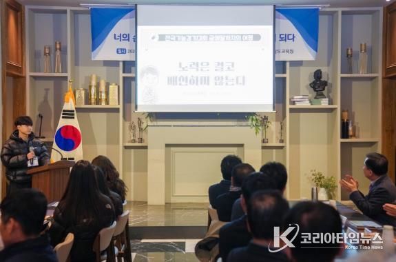 코리아타임뉴스 사회팀 | 충남교육청은 5일, 천안 일원에서 ‘2025 제60회 전국기능경기대회 평가회’를 개최해, 지난 9월 20일부터 26일까지 광주에서 개최된 전국기능경기대회에서 우수한 성과를 거둔 학생 선수단과 지도교사를 격려했다.