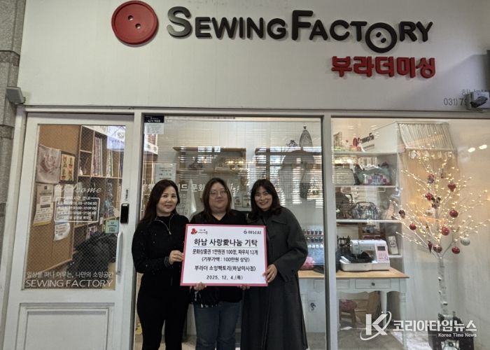 코리아타임뉴스 기동취재팀 | 하남시 드림스타트는 12월 4일 부라더 소잉팩토리 하남미사점으로부터 문화상품권 100만원과 수제 생리대 파우치 12개를 전달받았다고 밝혔다.