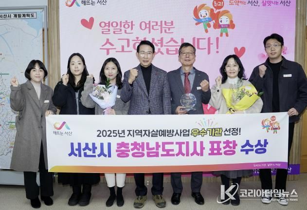 코리아타임뉴스 김택호 기자 | 충남 서산시는 충남도가 주관하는 ‘2025년 지역자살예방사업 평가’에서 우수기관으로 선정됐다고 밝혔다.