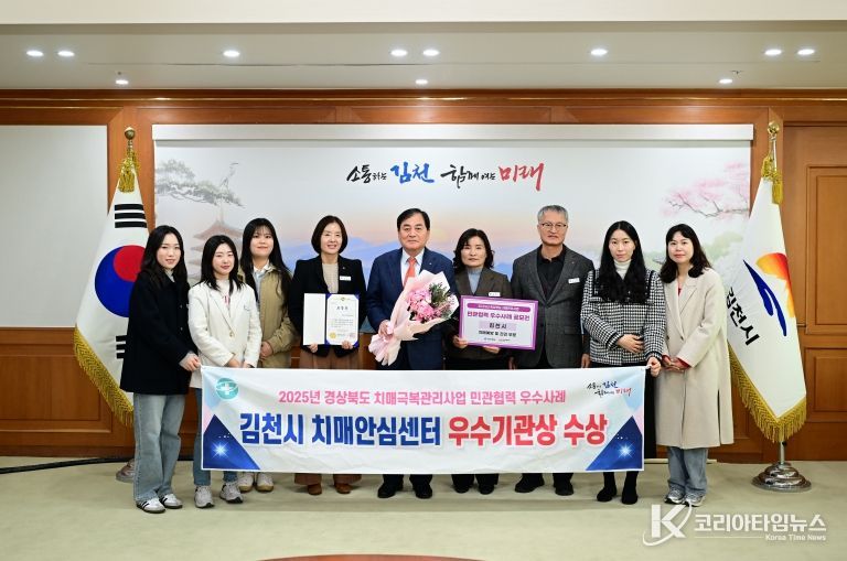 코리아타임뉴스 경북취재본부 | 김천시치매안심센터가 지역사회와 함께 추진한 ‘안심동행 프로젝트’가 경상북도 치매관리사업 민관협력 우수사례로 선정됐다. 이번 프로젝트는 검진·예방·환경 개선·지역홍보를 하나로 묶어 시민 누구나 가까운 곳에서 치매 서비스를 이용할 수 있도록 만든 통합형 협력 모델이다.