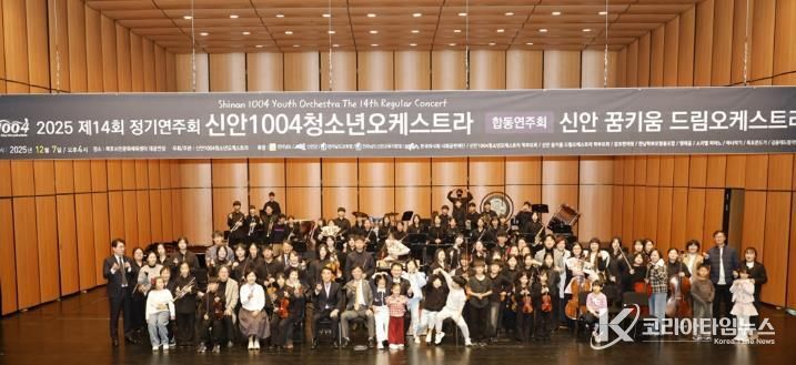 코리아타임뉴스 노승선 기자 | 신안군 섬 지역 청소년들의 예술적 성장을 이끌어 온 ‘신안1004청소년오케스트라’와 ‘신안 꿈키움 드림오케스트라’가 지난 7일 목포시민문화체육센터 대공연장에서 제14회 정기연주회 ‘천사들의 열네 번째 이야기’를 성공적으로 마무리했다.