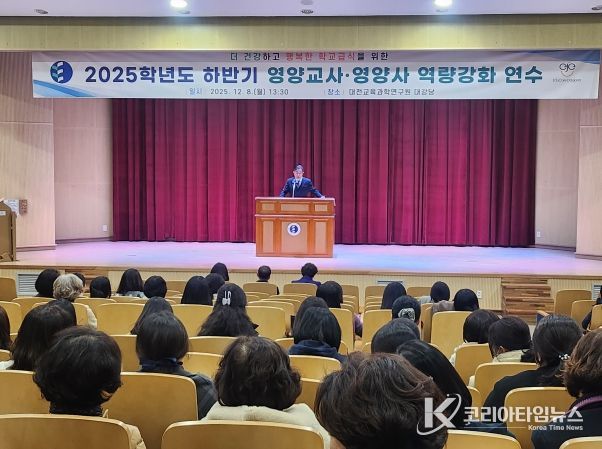 코리아타임뉴스 사회팀 | 대전시교육청은 12월 8일 대전교육과학연구원에서 관내 초·중·고·특수·각종학교의 영양교사와 영양사 350여 명을 대상으로‘2025학년도 하반기 역량강화 연수’를 실시했다고 밝혔다.