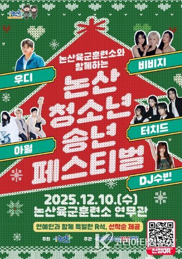 논산시는 10일 육군훈련소 연무관에서 ‘2025 청소년 송년페스티벌’을 개최한다고 밝혔다.