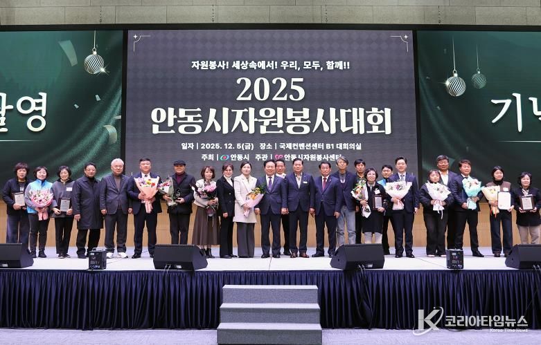 코리아타임뉴스 노승선 기자 | 안동시자원봉사센터는 5일 자원봉사자의 날을 맞아, 안동국제컨벤션센터 대회의실에서 헌신적인 나눔을 실천한 봉사자들을 격려하고 한 해 자원봉사활동을 마무리하는 ‘2025 안동시자원봉사대회’를 성황리에 개최했다.