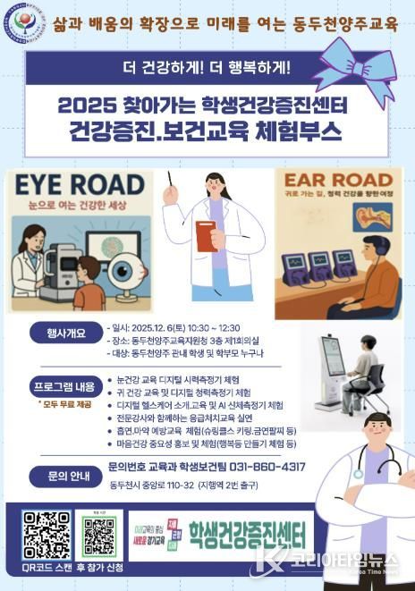 동두천양주교육지원청은 “AI 헬스케어, 디지털 시력·청력 측정기, 신체지표 분석 등 최신 디지털 기술을 활용한 체험형 교육을 통해 학생 스스로 건강상태를 이해하고 예방 관리 역량을 높이는 것이 가장 큰 목표”라고 설명했다. 또한 “체험 결과는 리포트 형태로 가정에 공유돼 가정-학교 간 건강 소통을 강화하는 효과도 기대된다”고 덧붙였다.