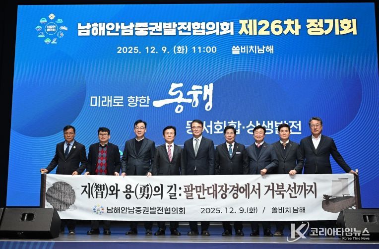 코리아타임뉴스 오영주 기자 | 남해안남중권발전협의회(회장 장충남 남해군수)는 9일 쏠비치 남해에서 제26차 정기회를 개최하고 공동건의문 4건을 채택하는 한편, 주요 협의 안건 7건을 승인했다.