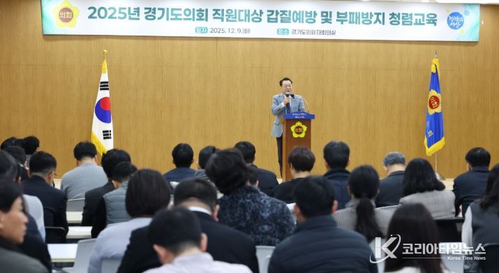 코리아타임뉴스 윤광희 기자 | 경기도의회는 9일 오전 의회 대회의실에서 전 직원을 대상으로 ‘갑질예방 및 부패방지 청렴교육’을 실시했다.