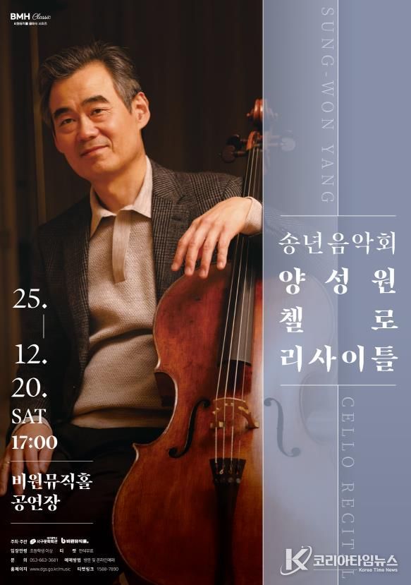 코리아타임뉴스 박찬식 기자 | 비원뮤직홀에서는 2025년 송년음악회로 한국 음악계의 거장 첼리스트 양성원의 풍부하고 깊이 있는 독주회를 개최해 한 해를 마무리한다.