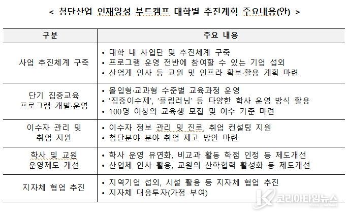 코리아타임뉴스 사회팀 | 교육부와 한국산업기술진흥원(원장 민병주)은 12월 11일에 ‘2026년 첨단산업 인재양성 부트캠프’ 운영계획을 발표하고, 공고를 통해 참여대학을 모집한다.