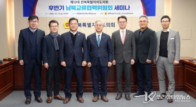 코리아타임뉴스 김태훈 기자 | 전북특별자치도의회 남북교류협력위원회는 15일 남북 관계 변화에 대한 다각적인 검토와 논의의 장을 마련하고, 향후 교류협력 사업 추진의 정책적·학술적 기반을 구축하기 위한 세미나를 개최했다.