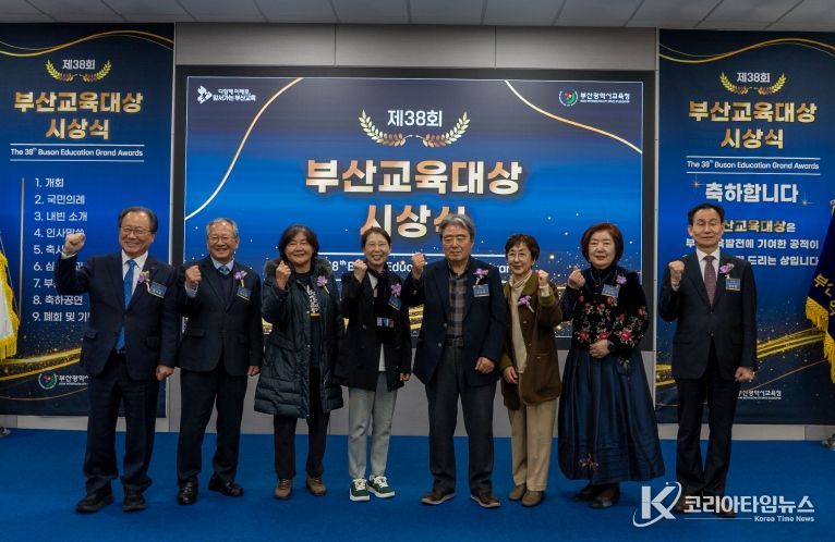 코리아타임뉴스 사회팀 | 김석준 부산광역시교육감이 16일 오후 3시 시교육청 별관 국제회의실에서 열린 ‘제38회 부산교육대상 시상식’에서 영광의 수상자들을 시상하고 축하의 말을 전했다.