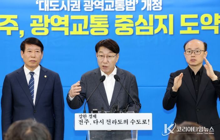 코리아타임뉴스 김태훈 기자 | 전주시가 민선 8기 들어 광역교통정책의 핵심 법령인 ‘대도시권 광역교통관리에 관한 특별법(대광법)’ 개정을 이끌어내면서 전주권 광역교통망 구축에 속도를 낼 수 있게 됐다.