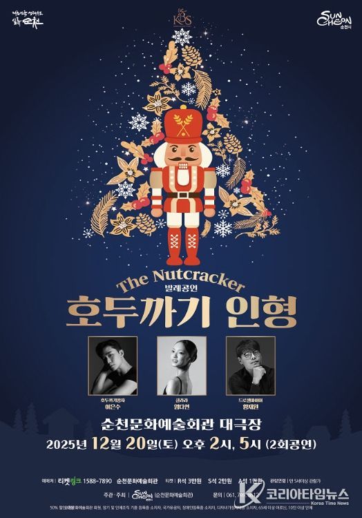 코리아타임뉴스 전남취재본부 | 순천시는 오는 20일 오후 2시와 5시 순천문화예술회관 대극장에서 송년기획공연 발레 '호두까기인형'을 선보인다.