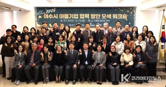 코리아타임뉴스 전남취재본부 | 여수시는 지난 12일 ‘2025년 여수시 마을기업 협력 방안 워크숍’을 마띠유 호텔에서 개최했다고 밝혔다.