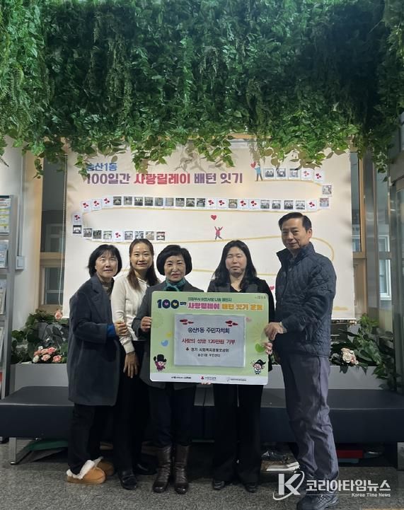 코리아타임뉴스 기동취재팀 | 의정부시 송산1동주민센터는 12월 11일 송산1동 주민자치회가 성금 120만 원을 기탁하며 ‘100일간 사랑릴레이 배턴 잇기’에 동참했다고 밝혔다.