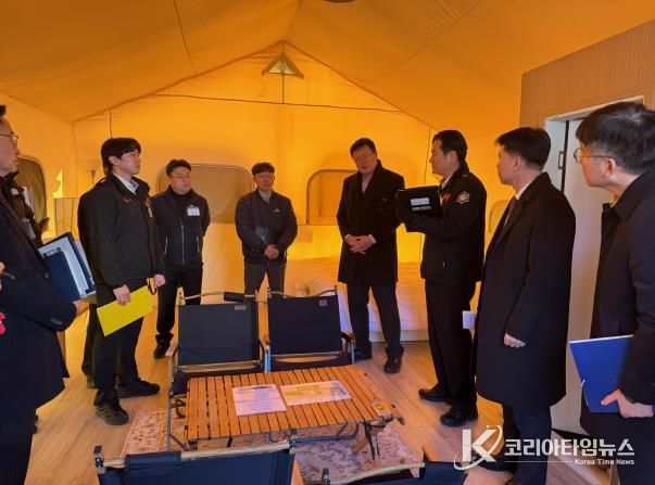 코리아타임뉴스 김택호 기자 | 아산시는 겨울철 야영장에서 발생할 수 있는 화재와 일산화탄소 중독 등 안전사고를 예방하기 위해 18일 문화체육관광부, 충청남도, 아산소방서, 한국전기안전공사 등 관계기관과 함께 합동 안전점검을 실시했다.