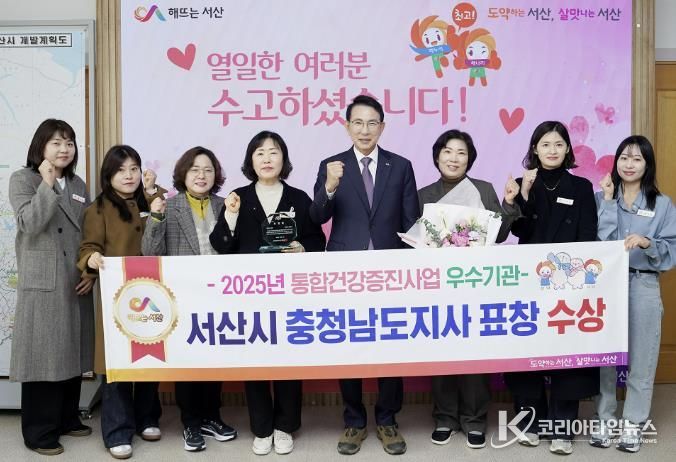 코리아타임뉴스 김택호 기자 | 충남 서산시는 2025년 통합건강증진사업 우수기관으로 선정돼 충청남도지사 표창을 받았다고 밝혔다.