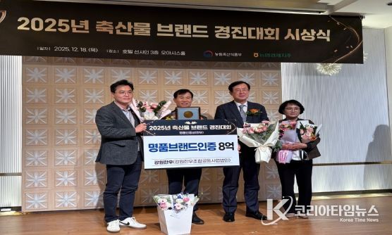 코리아타임뉴스 이아름 기자 | 강원특별자치도는 전국 800여 개 축산물 브랜드 가운데 (사)소비자시민모임의 엄격한 심사 기준을 통과한 28개 브랜드가 경쟁을 벌인 '2025년 축산물 브랜드 경진대회'에서 도내 한우·돼지 7개 브랜드가 수상하며 전국 최다 수상 기록을 달성했다고 밝혔다.