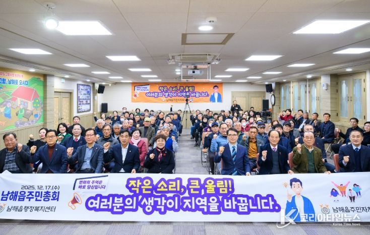 코리아타임뉴스 오영주 기자 | 남해읍 주민자치회(회장 하희택)는 17일 오후 2시, 남해읍행정복지센터 2층 회의실에서 주민과 함께하는 2025년 남해읍 주민총회를 개최했다.