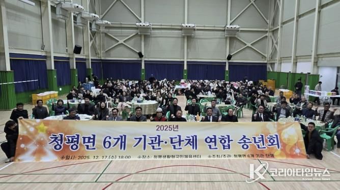 코리아타임뉴스 문화팀 | 가평군 청평면은 지난 17일 청평생활형국민체육센터에서 ‘2025년 청평면 6개 기관·단체 연합 송년회’를 개최하고 한 해를 마무리하는 시간을 가졌다.