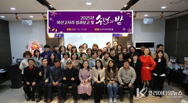 코리아타임뉴스 김택호 기자 | 고령화사회를 이롭게 하는 충남여성연합회 아산지부(회장 고윤경, 이하 아산고사리)는 지난 17일 아산터미널웨딩홀에서 한 해의 활동을 마무리하는 송년회를 열고, 이웃과 함께한 나눔의 시간을 되돌아보며 새로운 도약을 다짐했다.