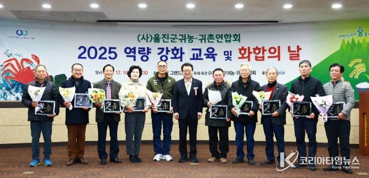 코리아타임뉴스 경북취재본부 | 울진군은 (사)울진군 귀농·귀촌연합회(회장 손동영) 주관으로 지난 12월 16일 울진그랜드호텔에서‘2025 울진군 귀농·귀촌 역량 강화 교육 및 화합의 날’행사를 성황리 마쳤다.