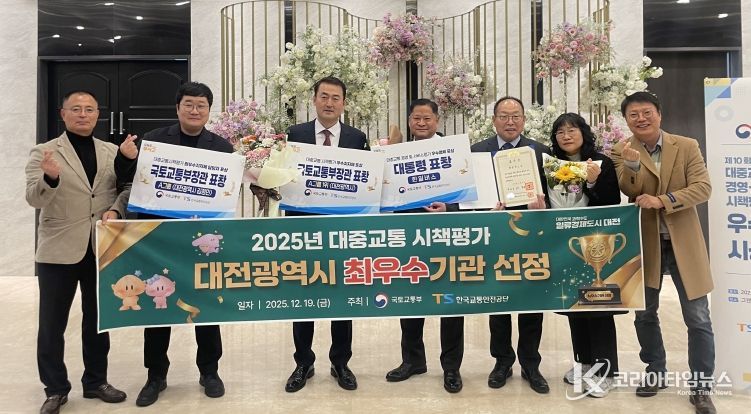 코리아타임뉴스 대전취재본부 | 대전시는 국토교통부 주관 2025년 대중교통 시책평가에서 최우수기관으로 선정돼 19일 장관 표창을 수상했다.