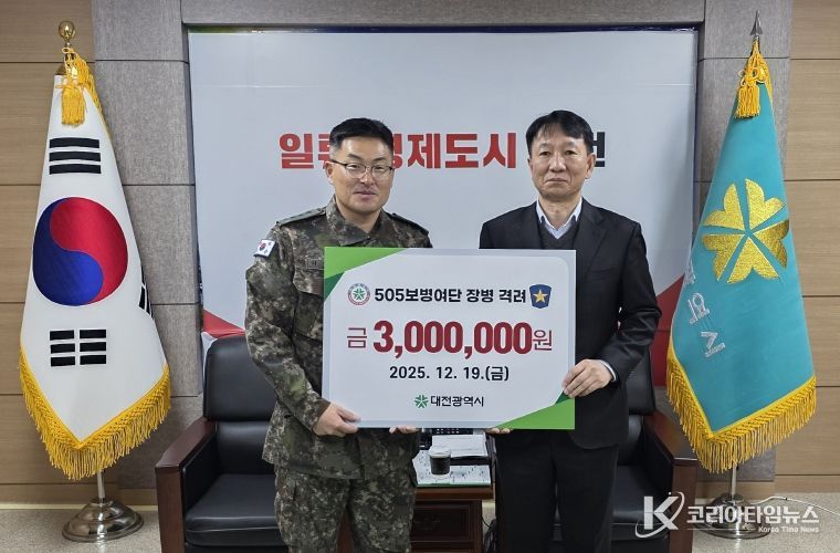 코리아타임뉴스 대전취재본부 | 대전시는 19일 오전, 제1970부대에 ‘25년 비상대비훈련을 성공적으로 마친 국군 장병의 노고를 격려하고 국가안보 헌신에 감사의 뜻을 담아 위문금을 전달했다.