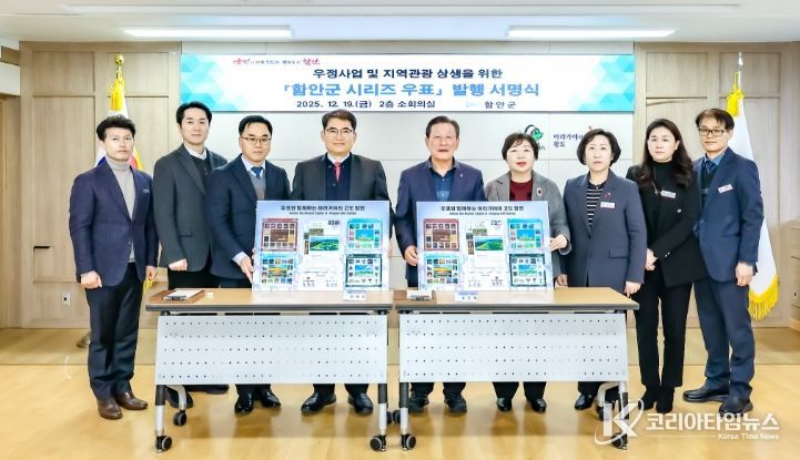 코리아타임뉴스 오영주 기자 | 함안군과 부산지방우정청이 지난 19일 군청 2층 회의실에서 ‘함안군 시리즈 우표’ 발행기념 서명식을 개최했다.