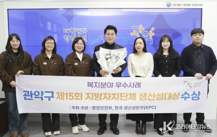 코리아타임뉴스 기동취재팀 | 관악구가 행정안전부 주최 ‘제15회 지방자치단체 생산성대상’에서 복지 분야 우수사례로 선정되어 한국생산성본부 회장 표창을 수상하는 쾌거를 거두었다.