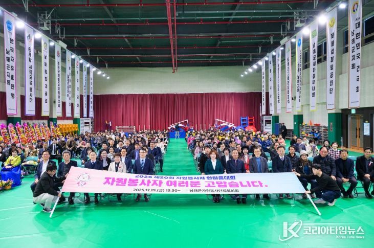 코리아타임뉴스 오영주 기자 | 남해군은 지난 19일 국민체육센터에서 2층 다목적체육관에서 제20회 자원봉사자의 날을 기념해 ‘2025년 자원봉사자 한마음대회’를 성황리에 개최했다.