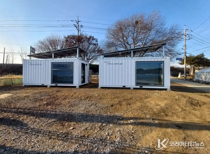 한파와 폭염에 모두 대응하는 에너지자립형으로 설치된 친환경 쉼터는 이동식 컨테이너 형태로 제작됐으며, 내부에는 냉난방 설비가 완비되어 있다.