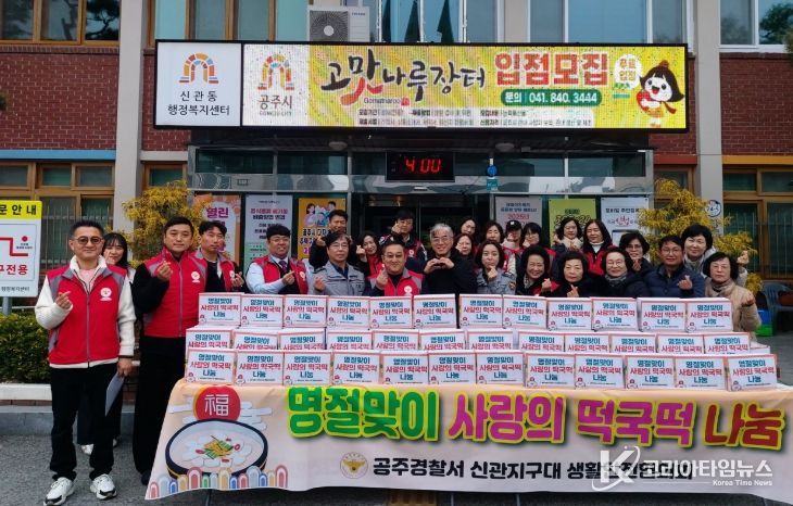 코리아타임뉴스 충남취재본부 | 공주시 신관동은 지난 20일 신관지구대생활안전협의회(회장 이정열)가 연말을 맞아 관내 경로당 24곳을 직접 방문해 떡국떡 3킬로그램씩을 전달하며 따뜻한 나눔을 실천했다고 밝혔다.