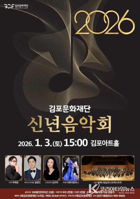 코리아타임뉴스 문화팀 | (재)김포문화재단이 새해 첫 무대로 내년 1월 3일 김포아트홀에서 '2026년 김포문화재단 신년 음악회'를 개최한다고 밝혔다.
