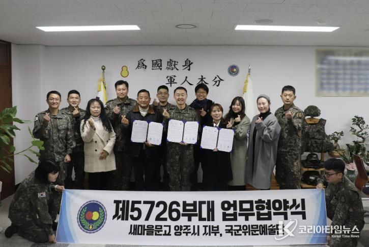 코리아타임뉴스 윤광희 기자 | 새마을문고 양주시지부는 지난 12월 19일, 육군 제5726부대에서 군 장병들의 독서문화 확산과 인문학적 소양 증진을 위한 업무협약(MOU)을 체결했다고 밝혔다.