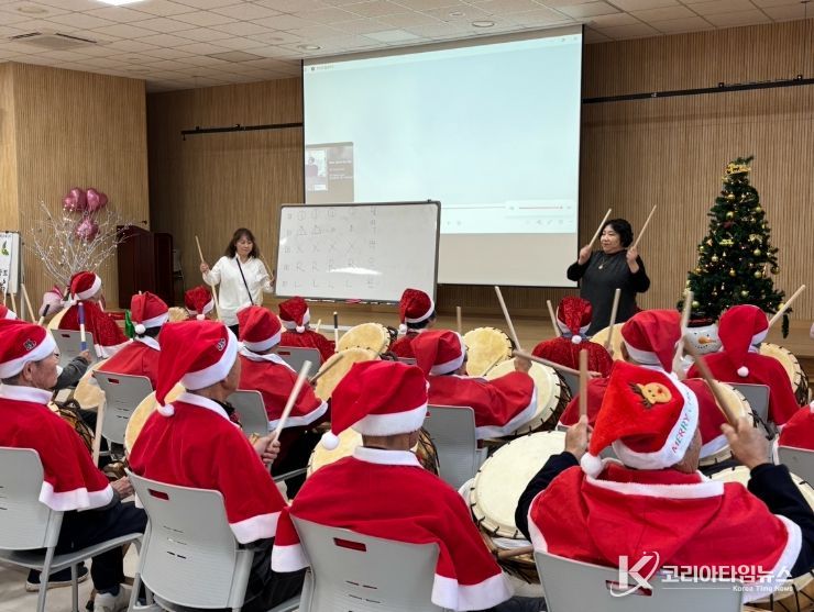 또한 직원들과 함께하는 ▲어르신들이 한 해 동안 만들어오신 ‘작품전’ 전시 ▲쉼터에서 즐거운 시간이 담긴 ‘활동 영상 감상’ ▲현실 인식 운동 및 율동 ▲음악 핸드벨 및 난타 ▲산타 선물 전달식 ▲단체 기념 촬영 등 다양한 내용으로 참여자들께 큰 호응과 감동을 줬다.