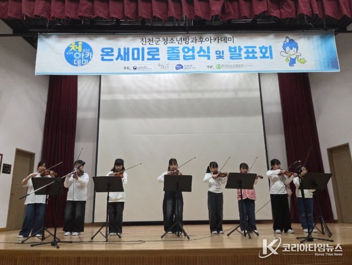 코리아타임뉴스 충북취재본부 | (사)한국청소년육성회 진천지구회(회장 송대현)가 운영하는 진천군청소년방과후아카데미 ‘온새미로’는 지난 19일 진천군청소년수련관에서 제18회 졸업식과 발표회를 개최했다.