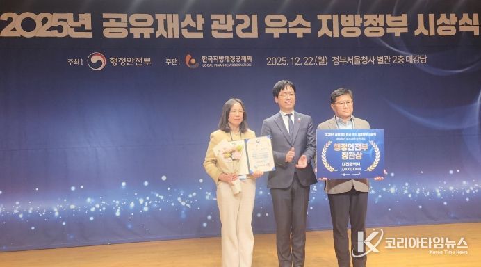 코리아타임뉴스 대전취재본부 | 대전시는 행정안전부 주관‘2025년 공유재산 우수 지자체 시상식’에서 '우수사례 경진대회 부문'행정안전부 장관 기관표창을 수상했다.