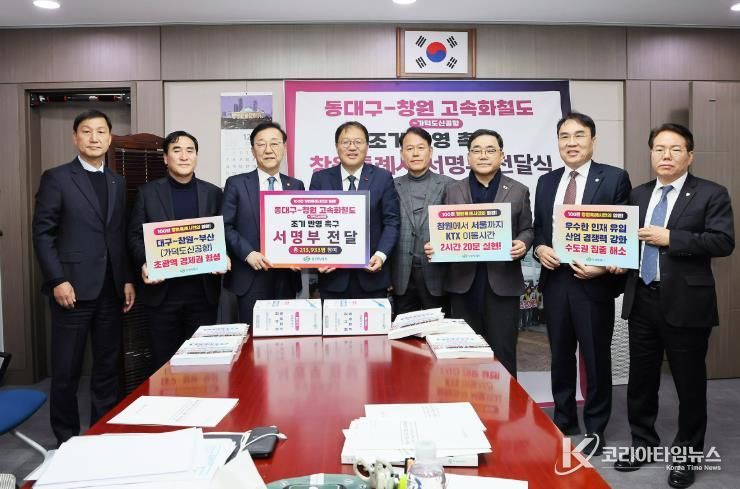 코리아타임뉴스 오영주 기자 | 창원특례시는 지난 12월 4일 국토교통부장관에게 ‘동대구-창원 고속화철도 조기 반영 촉구’ 21만 서명부를 전달한 데 이어, 22일에는 실무부서인 철도정책과를 방문해 ‘제5차 국가철도망 구축계획’ 반영을 강력히 건의했다고 밝혔다.
