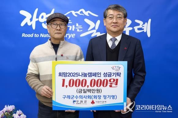 코리아타임뉴스 전남취재본부 | 전남 구례군은 12월 22일 구례군수의사회에서 연말연시를 맞아 어려운 이웃을 돕기 위한 성금 100만 원을 기탁했다고 밝혔다.